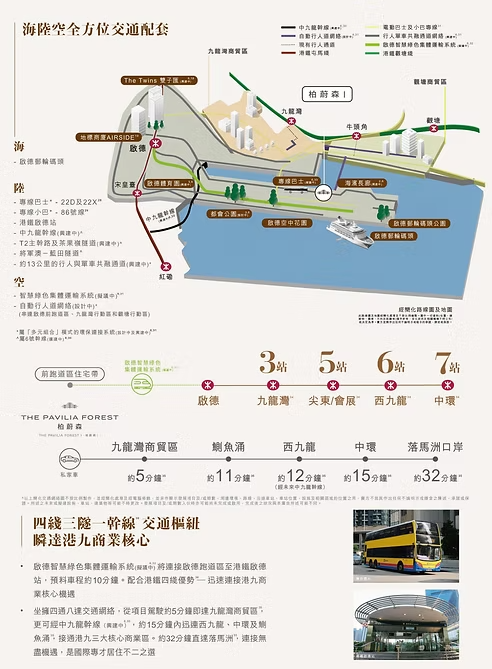「柏蔚森 The Pavilia Forest」坐落啟德的臨海優越位置,分3期發展,合共提供1,305個住宅單位,單位間隔多元化,主打2房戶型。